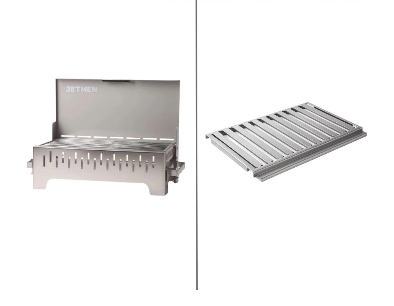 Jetmen Quick Grill Inox Mangal + Paslanmaz Çelik Oluklu Izgara Seti